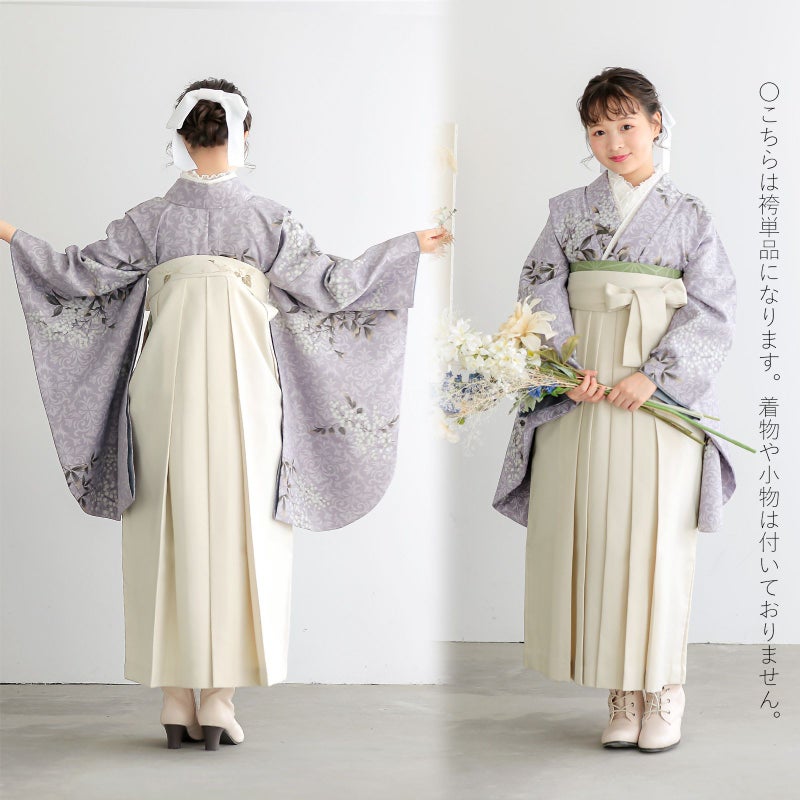 中仕切りのない行灯袴(あんどんはかま)ですので、丈の長い着物でも合わせていただけます。