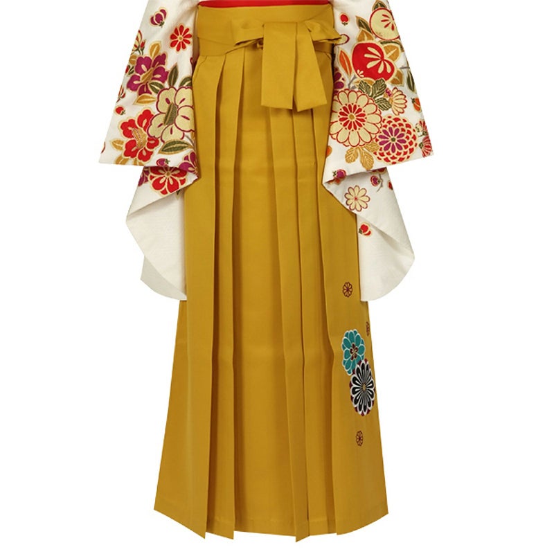 卒業式の装いにぴったりの袴単品です。中仕切りのない行灯袴(あんどんはかま)ですので、丈の長い着物でも合わせていただけます。洋服のスカートと同じようにお召しいただけます。振袖や二尺袖着物に合わせやすい華やかな袴です。生地はお手入れしやすいポリエステル素材です。草履はもちろん、ブーツを合わせたモダンな着こなしもいいですね。