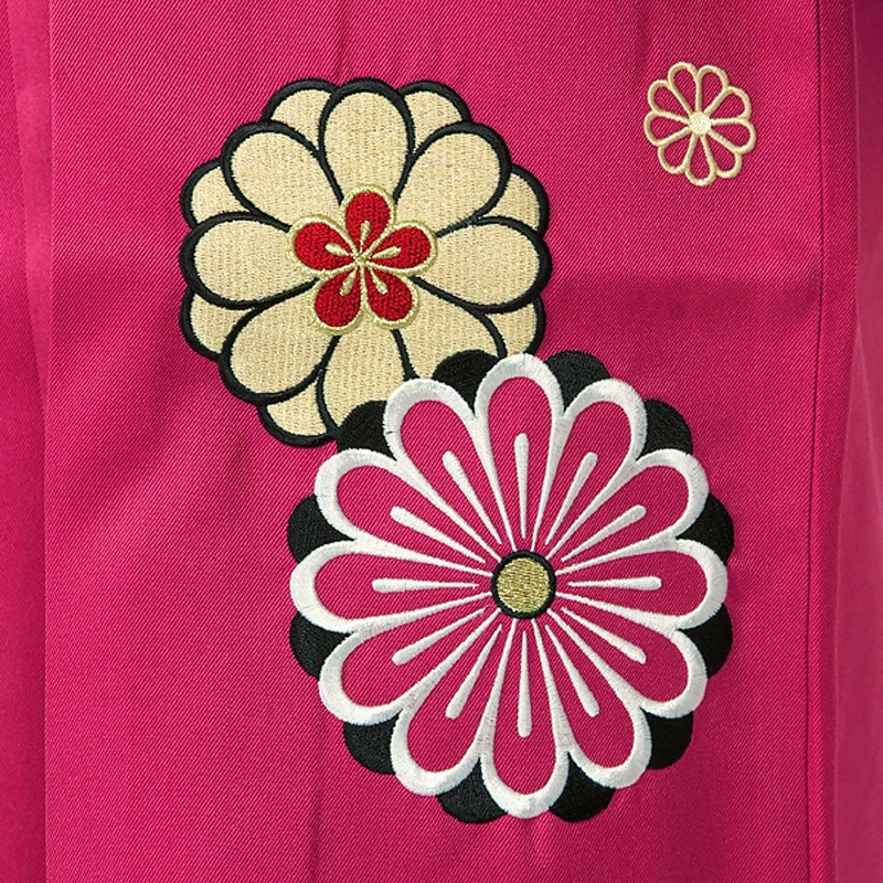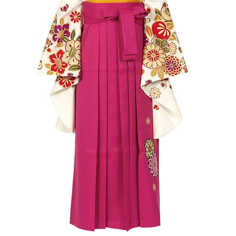卒業式の装いにぴったりの袴単品です。中仕切りのない行灯袴(あんどんはかま)ですので、丈の長い着物でも合わせていただけます。洋服のスカートと同じようにお召しいただけます。振袖や二尺袖着物に合わせやすい華やかな袴です。生地はお手入れしやすいポリエステル素材です。草履はもちろん、ブーツを合わせたモダンな着こなしもいいですね。