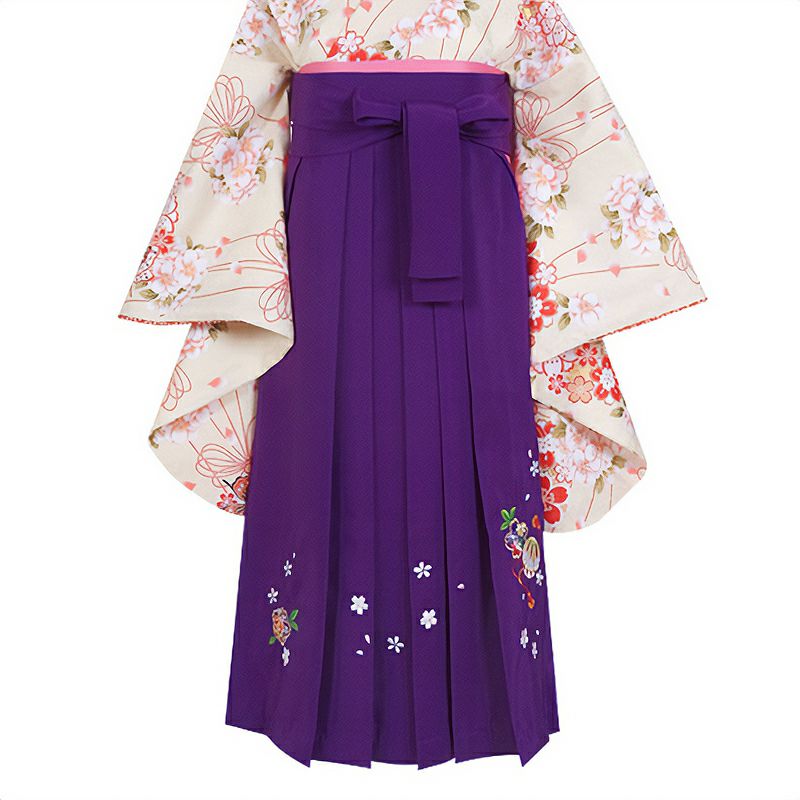 卒業式の装いにぴったりの袴単品です。中仕切りのない行灯袴(あんどんはかま)ですので、丈の長い着物でも合わせていただけます。洋服のスカートと同じようにお召しいただけます。振袖や二尺袖着物に合わせやすい華やかな袴です。生地はお手入れしやすいポリエステル素材です。草履はもちろん、ブーツを合わせたモダンな着こなしもいいですね。