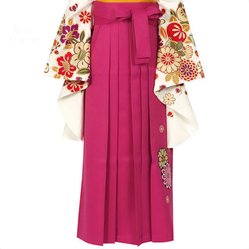 卒業式の装いにぴったりの袴単品です。中仕切りのない行灯袴(あんどんはかま)ですので、丈の長い着物でも合わせていただけます。洋服のスカートと同じようにお召しいただけます。振袖や二尺袖着物に合わせやすい華やかな袴です。生地はお手入れしやすいポリエステル素材です。草履はもちろん、ブーツを合わせたモダンな着こなしもいいですね。
