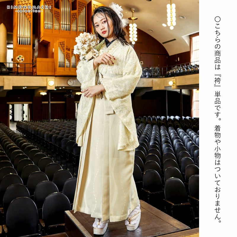 3. 袴 ジャガード織 単品「ウェーブドット オフホワイト」卒業式 袴 レディース 行燈袴 Lサイズ 日本製 女性用袴単品 取り寄せ品<U>【メール便不可】