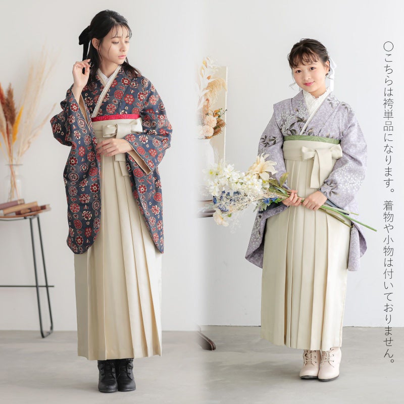 中仕切りのない行灯袴(あんどんはかま)ですので、丈の長い着物でも合わせていただけます。