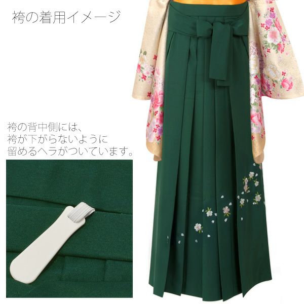 (卒業式応援最大70%OFF 2/5迄)無地袴単品「緑色 桜の刺繍」4S、3S、2S、S、M、L、2L 袴 ジュニア袴 刺繍袴 卒業式、修了式に はいからさんスタイル 先生袴 【メール便不可】ss2112hkm20ss2206hkm20