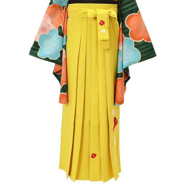 (卒業式駆け込みSALE3/19迄)【Prices down4】袴 単品 「レモンイエロー 椿の刺繍 6S / 5S / 3S / SS / S / M / L / LL / 3L 小さいサイズ、ジュニアサイズから大きいサイズまで」 卒業式 袴 レディース ジュニア 子供~大人 行燈袴 女の子用袴単品 女性用袴単品 【メール便不可】ss2512hkm15