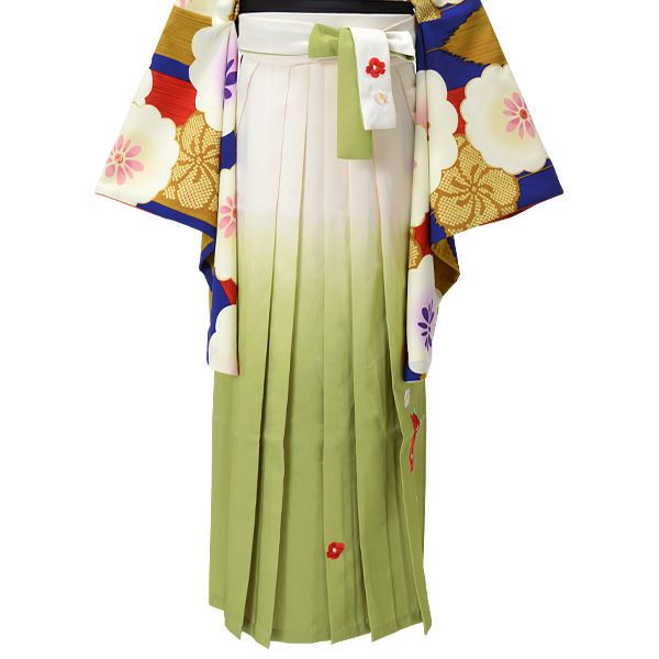 【Prices down3】袴 単品 「抹茶×白 ぼかし 椿の刺繍 6S / 5S / 3S / SS / S / M / L / LL / 3L 小さいサイズ、ジュニアサイズから大きいサイズまで」 卒業式 袴 レディース ジュニア 子供~大人 行燈袴 女の子用袴単品 女性用袴単品 【メール便不可】ss2509hkm15