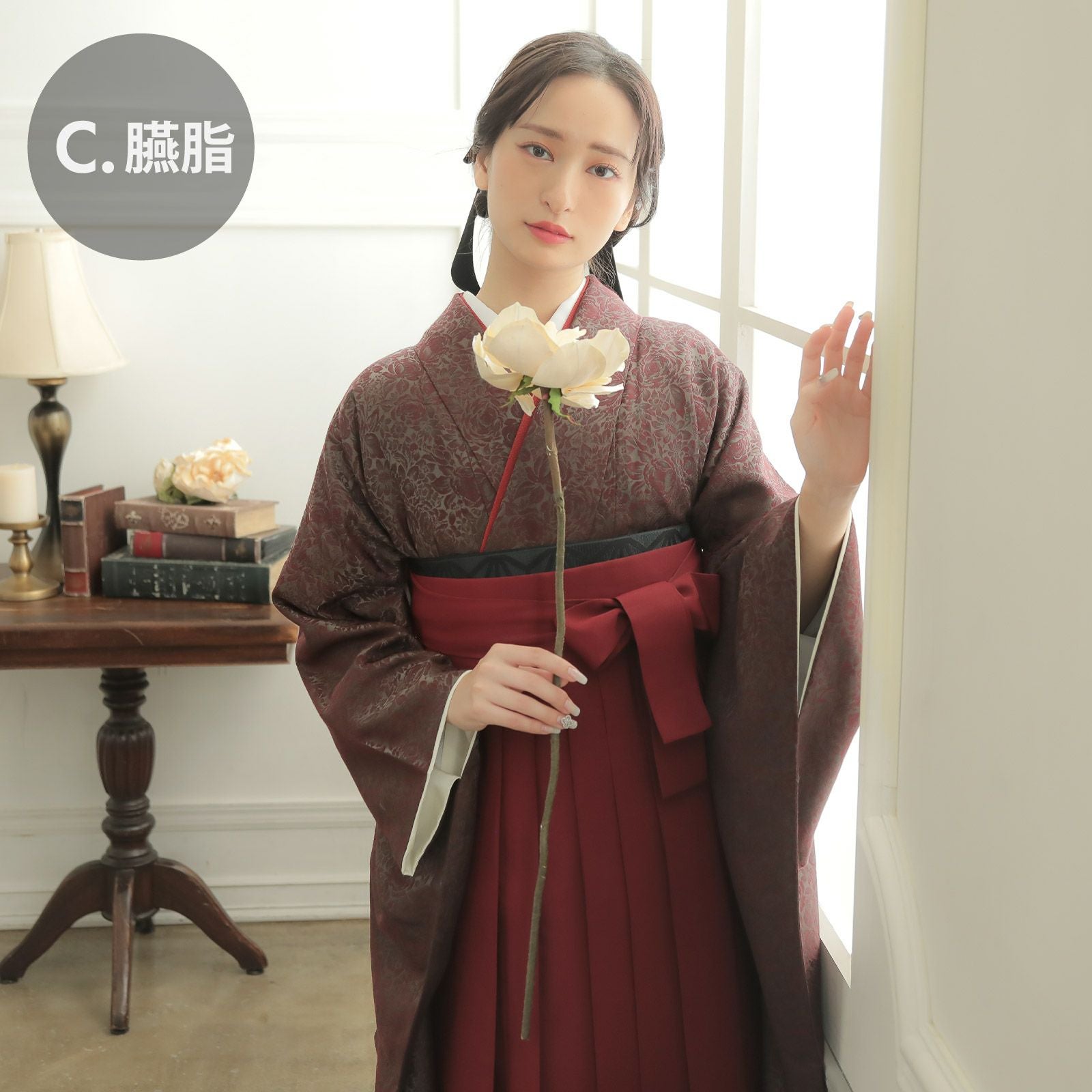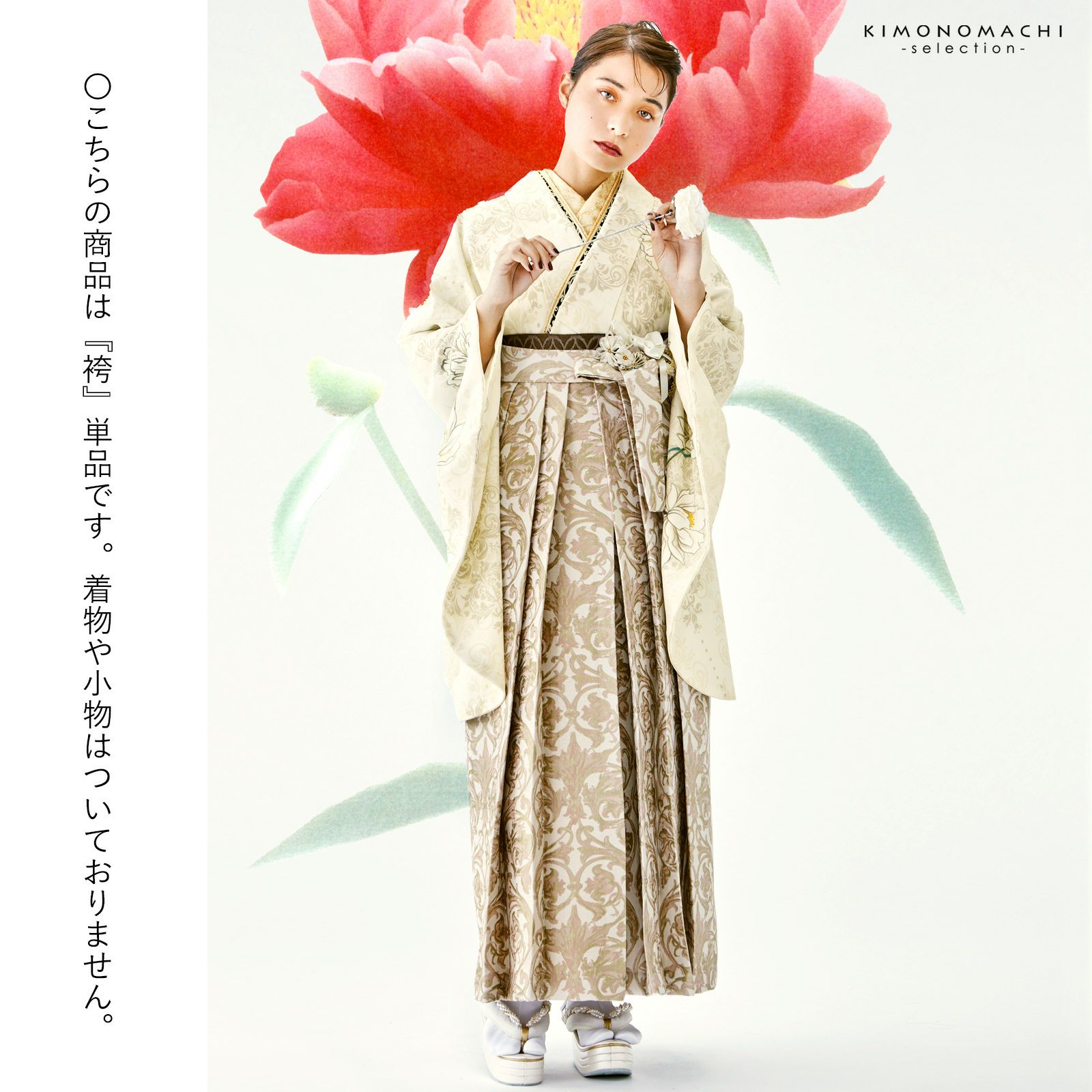 他の画像を見る 送料無料 卒業式、修了式に 女性用袴 スカートタイプ 行灯袴 (卒業式応援Point10倍 2/19迄)袴 ジャガード織 単品「パルメット ローズミスト」卒業式 袴 レディース 行燈袴 Lサイズ 日本製 女性用袴単品 取り寄せ品<U>【メール便不可】 きもの町価格 ¥ 49,500 税込 販売期間 2026/02/05 18:00 〜 2026/02/19 17:59 カートに入れる お気に入りに登録する