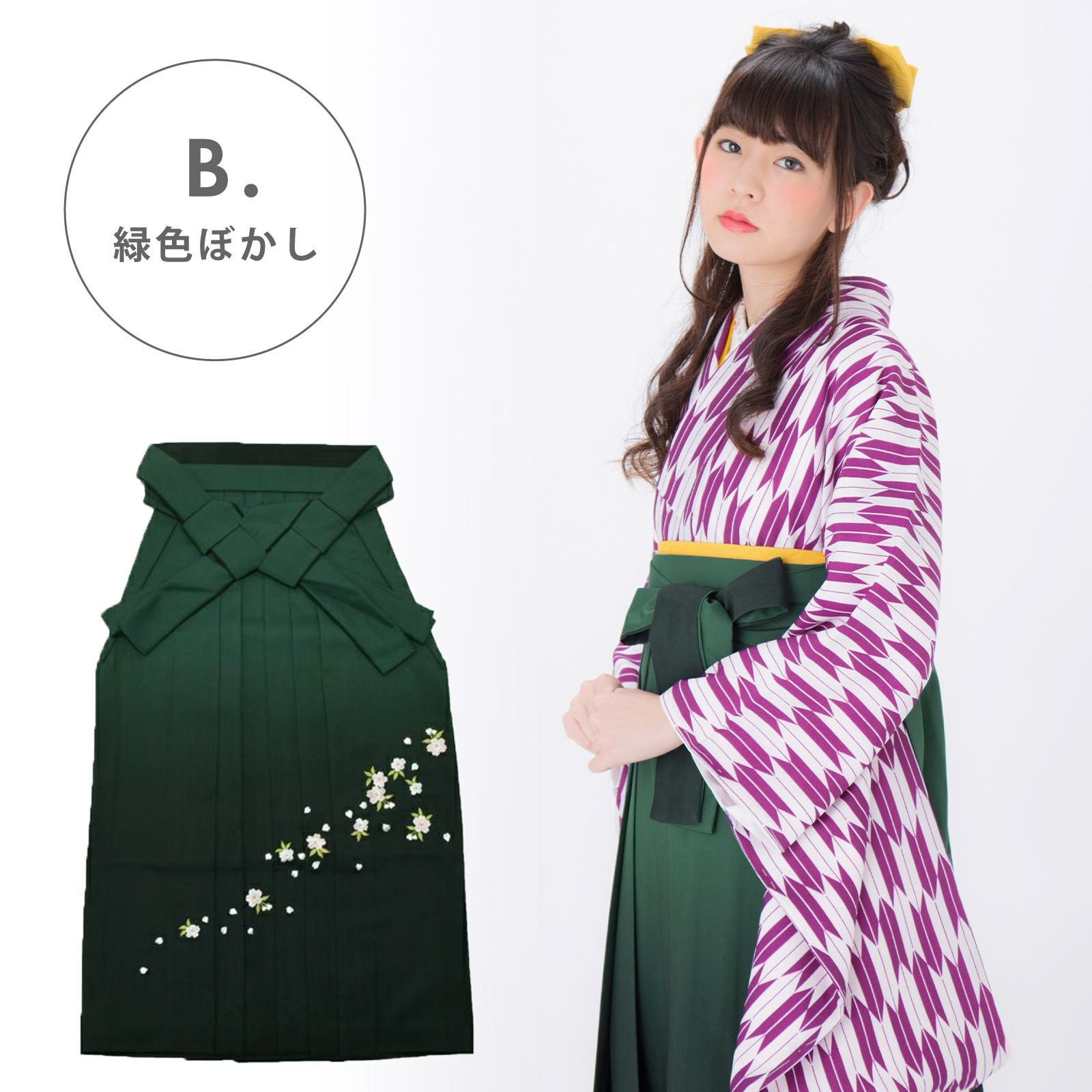他の画像を見る 卒業式、修了式に 女性袴 (卒業式応援75%SALE 2/19迄)【卒業式 袴 単品】グラデーション 桜の刺繍 黒 緑 エンジ 紫 4サイズ:S、M、L、LL(2L) 卒業式 修了式 先生 教員 レディース 女の子 行灯 ヘラ付き 小学校 大きいサイズ 小さいサイズ ブラック パープル グリーン【メール便不可】 通常販売価格 ¥ 6,590 のところ きもの町価格 ¥ 5,930 税込 販売期間 2026/02/05 18:00 〜 2026/02/19 17:59 カートに入れる お気に入りに登録する