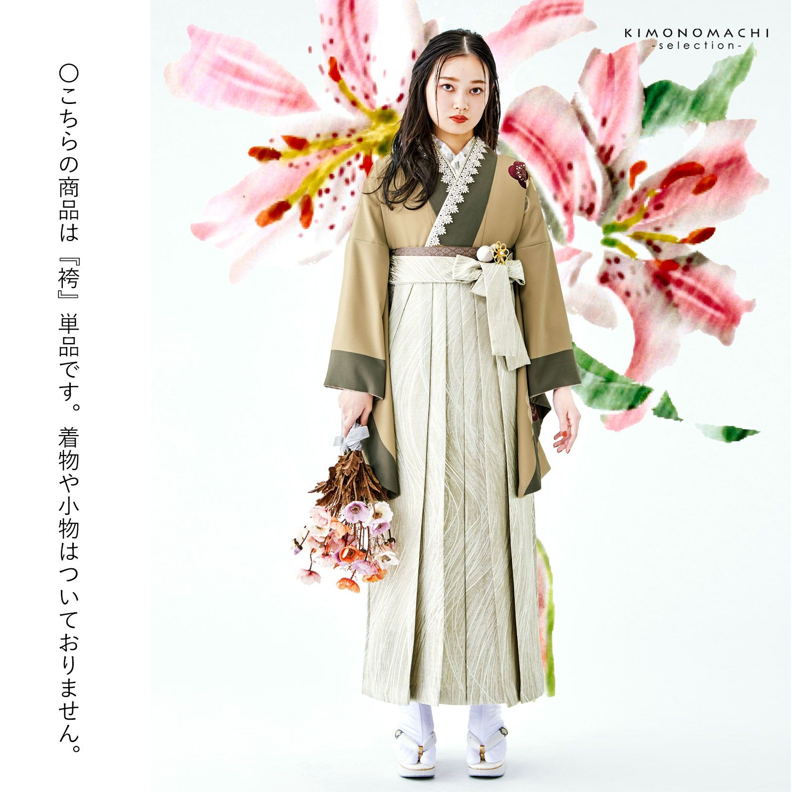 他の画像を見る 送料無料 卒業式、修了式に 女性用袴 スカートタイプ 行灯袴 (卒業式応援Point10倍 2/19迄)袴 ツートンカラー 単品「カーキ×オフホワイト」卒業式 袴 レディース 行燈袴 Lサイズ 日本製 無地 女性用袴単品 取り寄せ品<U>【メール便不可】 きもの町価格 ¥ 49,500 税込 販売期間 2026/02/05 18:00 〜 2026/02/19 17:59 カートに入れる お気に入りに登録する