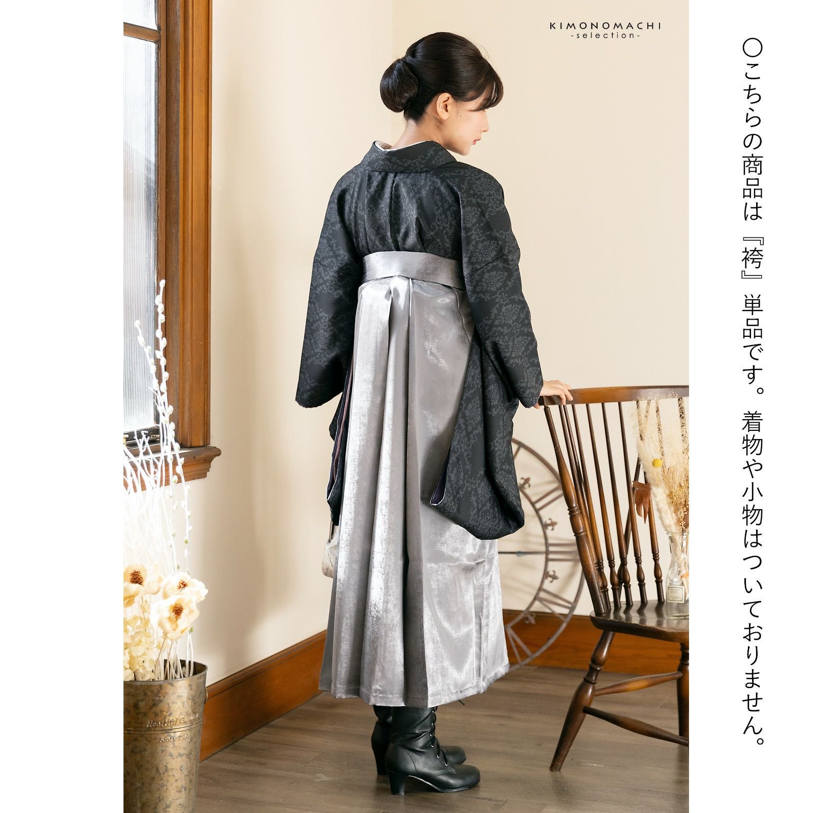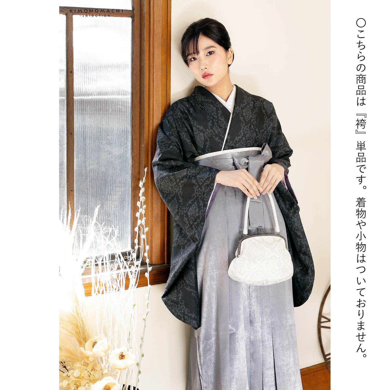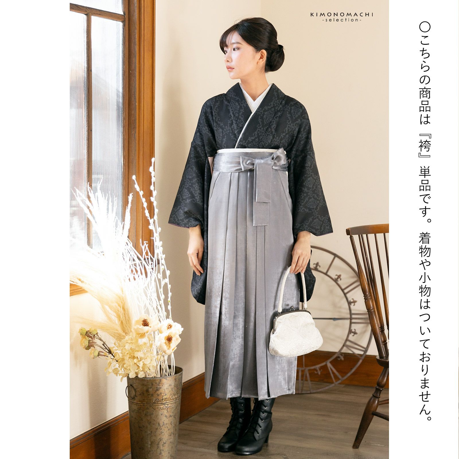 他の画像を見る 卒業式の装いにぴったりの袴 (卒業式応援75%SALE 2/19迄)箔風袴 単品「箔風 銀」卒業式 袴 レディース 行燈袴 M・L・LL/2Lサイズ 女性用袴単品 【メール便不可】 通常販売価格 ¥ 30,800 のところ きもの町価格 ¥ 26,180 税込 販売期間 2026/02/05 18:00 〜 2026/02/19 17:59 カートに入れる お気に入りに登録する