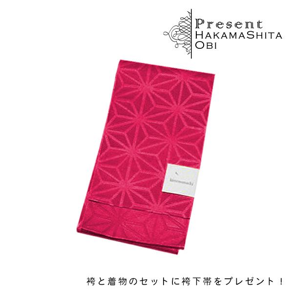 二尺袖着物、袴の2点に、プラス袴下帯がついた計3点セットでお届けします。着物はポリエステル素材ですので、お洗濯も簡単で、お手入れが楽ちんです。袴下帯はきれいな発色が自慢の麻の葉柄帯をお付けいたします。(モデル着用の帯とは織り模様が異なります。悪しからずご了承くださいませ)