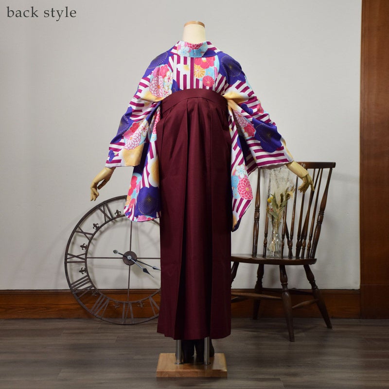 ※こちらの商品は着物と袴と袴下帯の3点セットです。襦袢、草履、ブーツ、バッグ、髪飾りなどは付属しておりません。