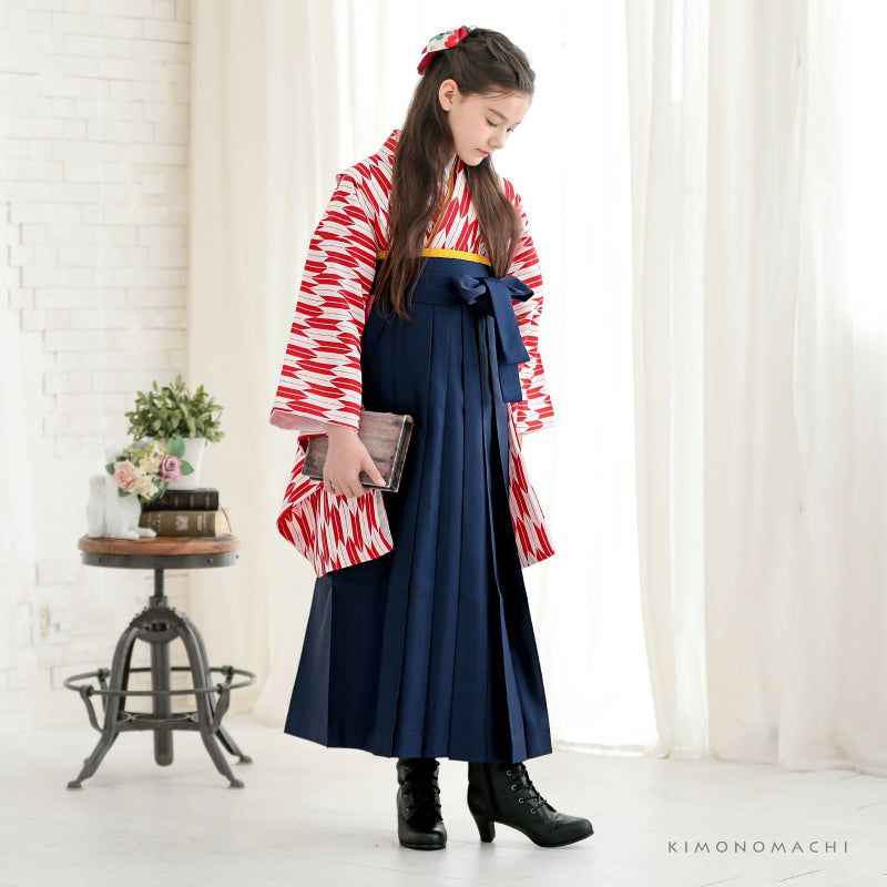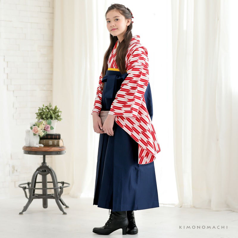 【カラー】赤×白の矢羽の着物+紺の袴
