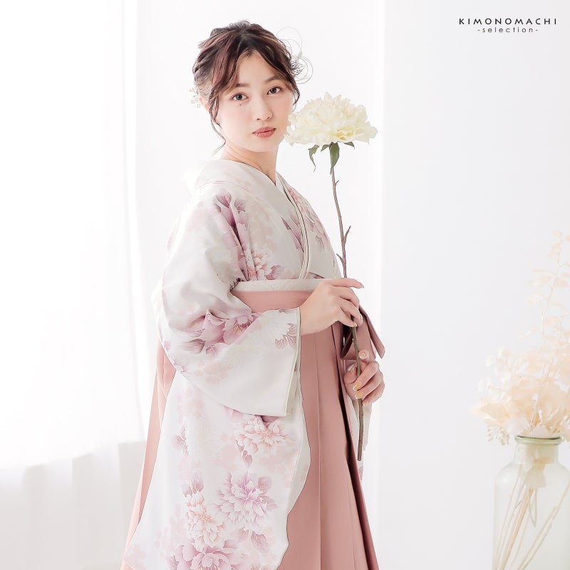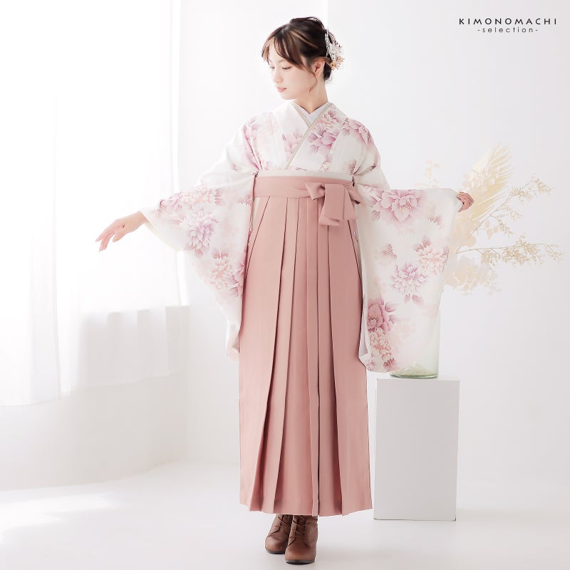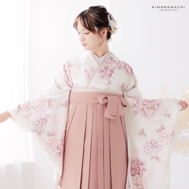 卒業式に 二尺袖袴セット 卒業式 袴 レディース 袴 セット 卒業式 女性 4点セット「二尺袖:牡丹に菊 パールピンク+袴:スモーキーピンク 南天+袴下帯:白 麻の葉+襦袢」卒業式 女性 レディース お仕立て上がり 袴セット 二尺袖着物セット 着物 二尺着物 袴【メール便不可】