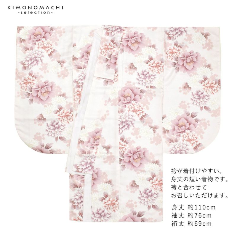 卒業式に 二尺袖袴セット 卒業式 袴 レディース (卒業式応援10%OFFCOUPON1/22迄)袴 セット 卒業式 女性 4点セット「二尺袖:牡丹に菊 パールピンク+袴:スモーキーピンク 南天+袴下帯:ダルパープル 麻の葉+襦袢」卒業式 女性 レディース お仕立て上がり 袴セット 二尺袖着物セット 着物 二尺着物 袴【メール便不可】