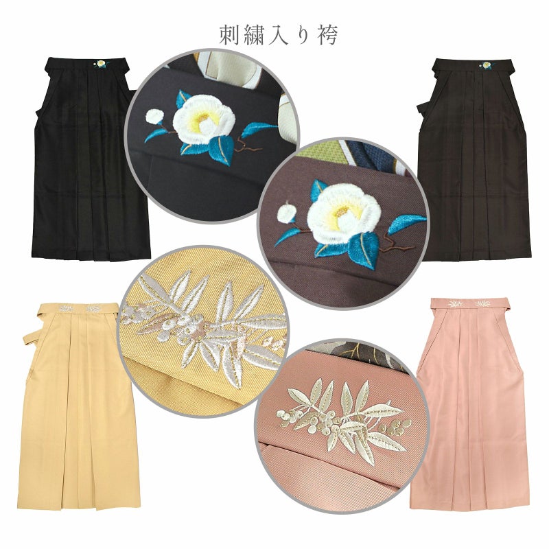 袴:黒地、腰の部分に白の椿の刺繍