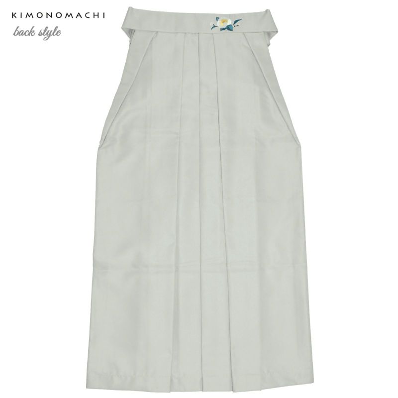 袴:アイスグレー地、腰の部分に白の椿の刺繍