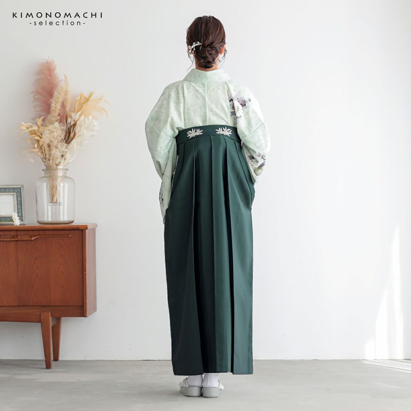 先生袴 セット 4点セット「訪問着:アイスグリーン ブーケ+袴:ダークグリーン 南天+袴下帯:シルバーグレー 七宝+襦袢」卒業式 女性 レディース お仕立て上がり 袴セット 訪問着セット 着物 訪問着 袴 先生【メール便不可】