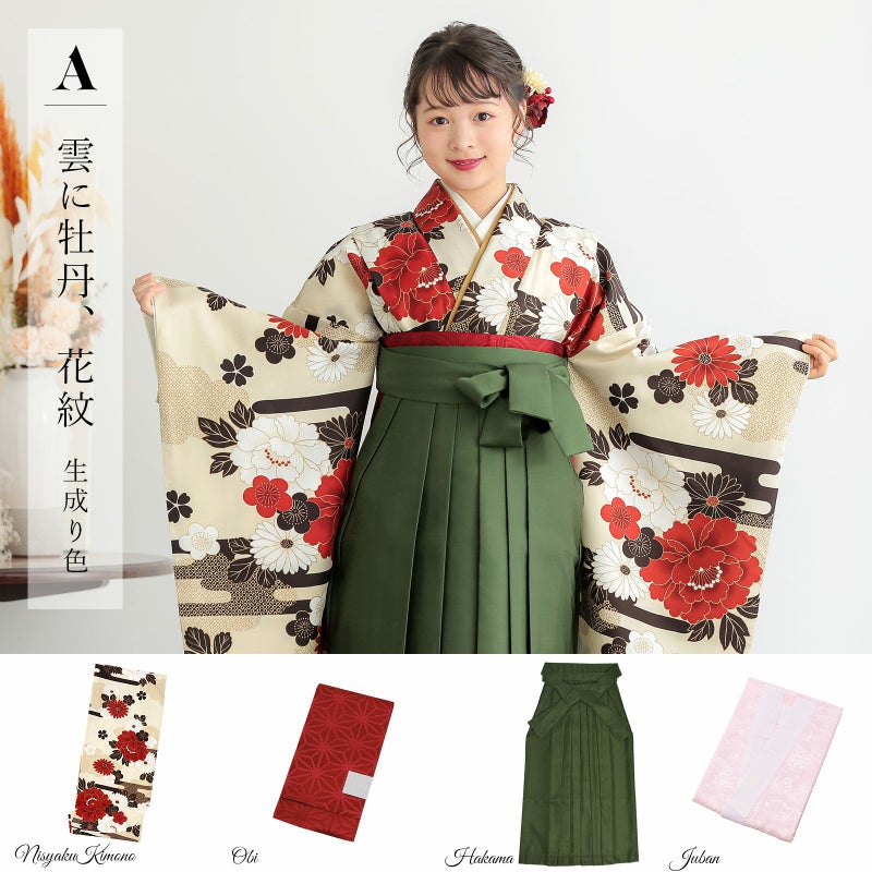 二尺袖と袴に帯と襦袢もセットになった4点セット