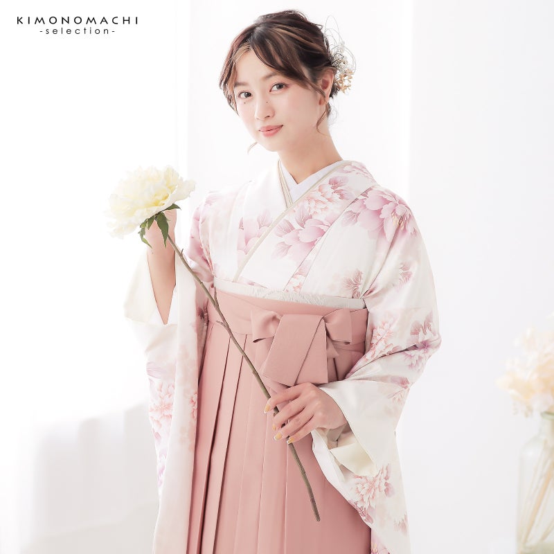 京都きもの町厳選コーディネート!卒業式におすすめの袴スタイル、二尺袖着物と袴に、帯と補袢もついた4点セットです。