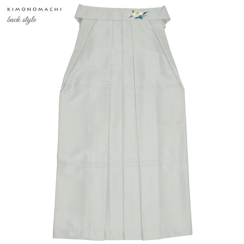 袴:アイスグレー地、腰の部分に白の椿の刺繍