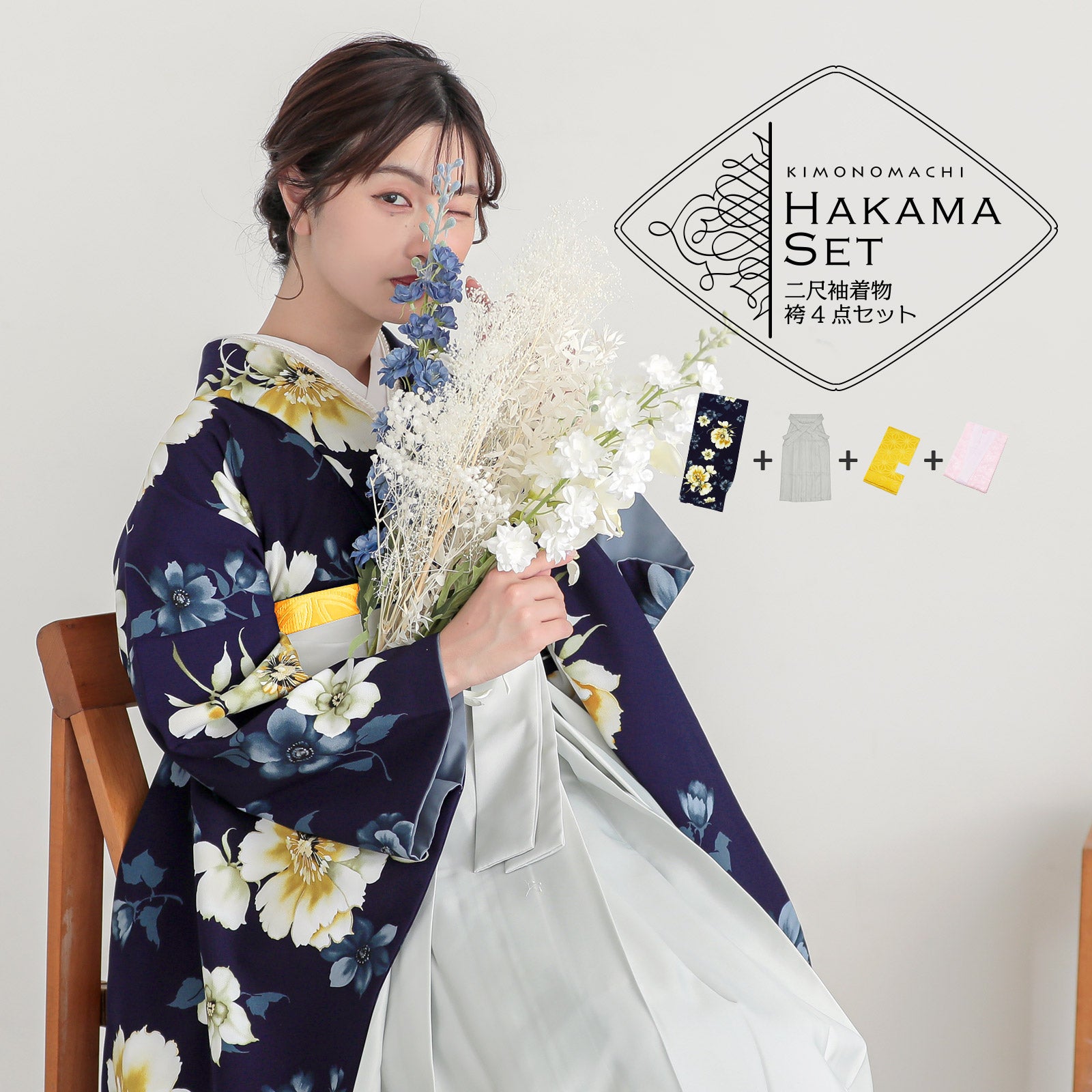 他の画像を見る 送料無料 卒業式に 二尺袖袴セット 卒業式 袴 レディース 袴 セット 卒業式 女性 4点セット「二尺袖:紅一点 ネイビー 洋花+刺繍袴:アイスグレー 椿+袴下帯+襦袢」卒業式 女性 レディース お仕立て上がり 袴セット 二尺袖着物セット 着物 二尺着物 袴【メール便不可】 きもの町価格 ¥ 88,984 税込 カートに入れる お気に入りに登録する
