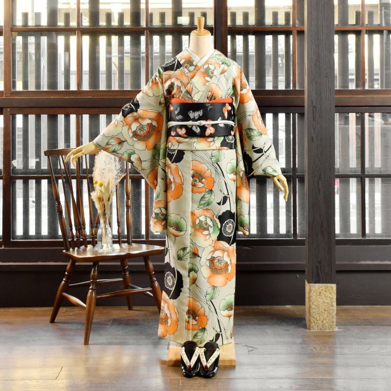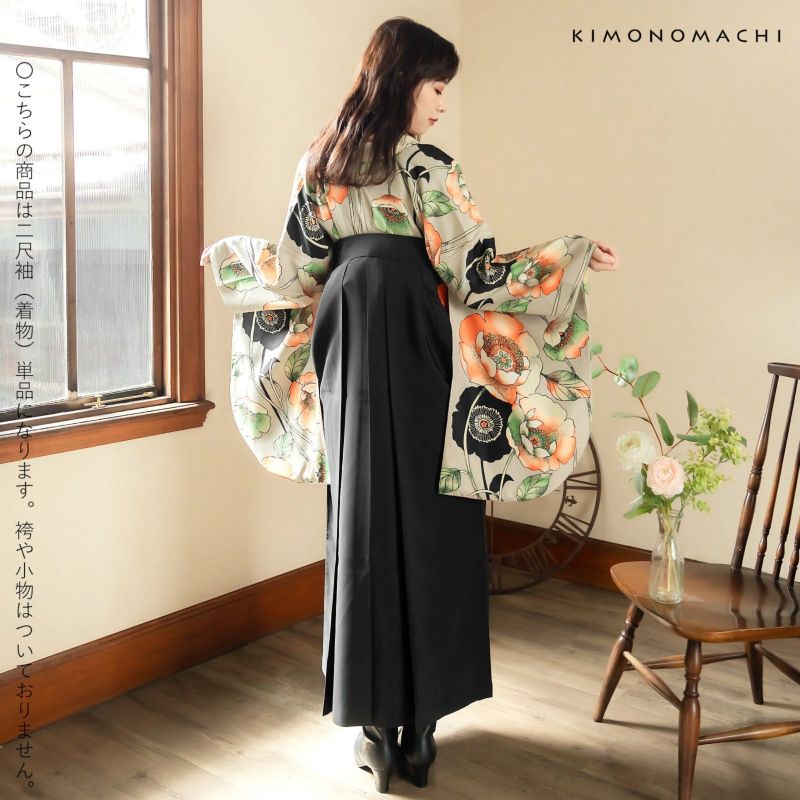 京都きもの町オリジナルブランド「KIMONOMACHI」の二尺袖着物単品です。袴と合わせて卒業式などの袴スタイルに。また身丈が通常の着物と同様の長さがございますので、袴無しで、袖が長めなアンティーク風着物としてもお召しいただけます。
