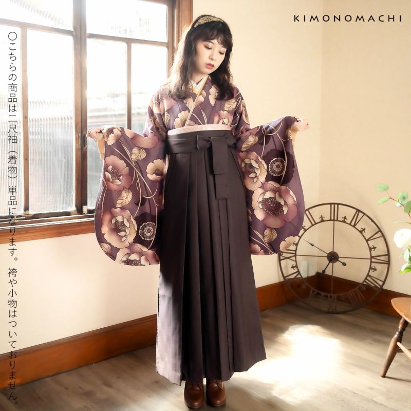 京都きもの町オリジナルブランド「KIMONOMACHI」の二尺袖着物単品です。袴と合わせて卒業式などの袴スタイルに。また身丈が通常の着物と同様の長さがございますので、袴無しで、袖が長めなアンティーク風着物としてもお召しいただけます。