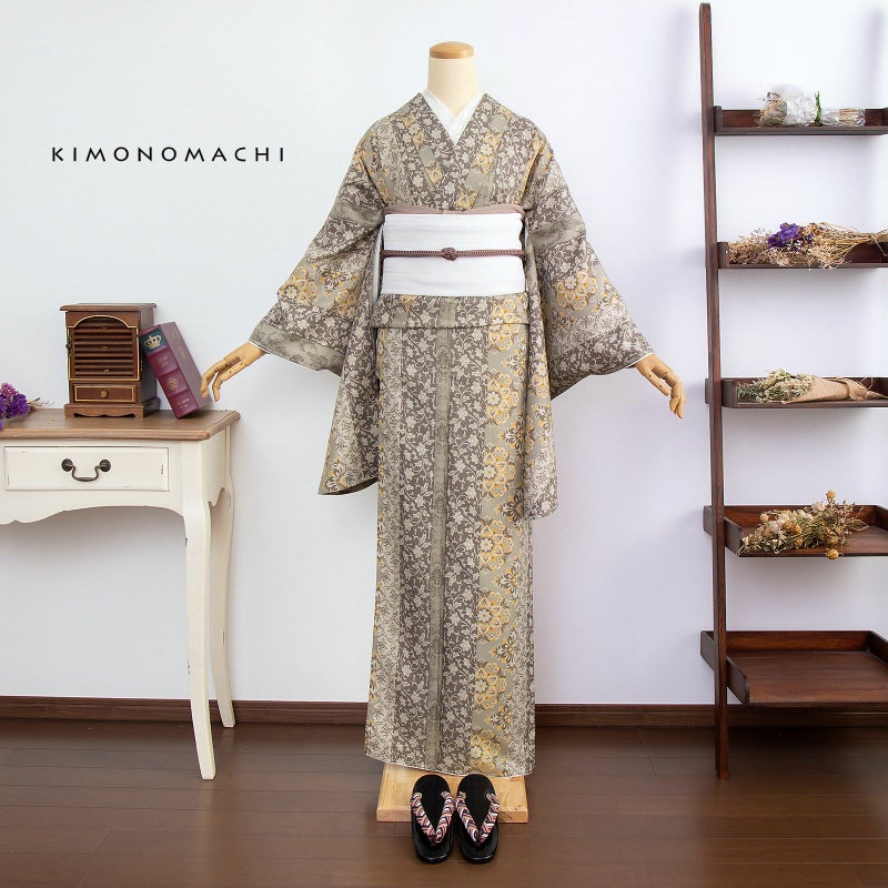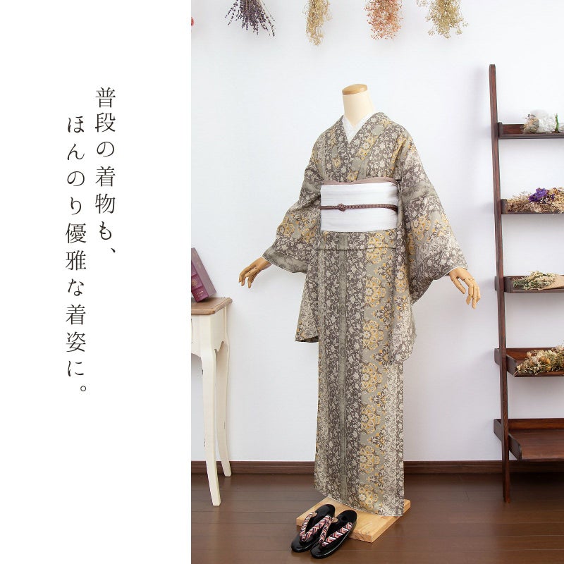 袴と合わせて、卒業式・謝恩会にぴったりの袴スタイルに。 普段着着物として、長めの袖でアンティーク風な着こなしに。