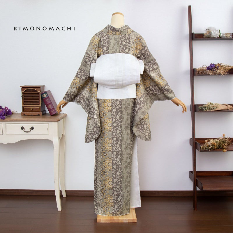 3. (卒業式応援75%SALE 3/5迄)二尺袖着物 単品 「縞更紗 利休」 KIMONOMACHIオリジナル お仕立て上がり レディース 洗える着物 二尺袖 着物 袴に合わせて 卒業式 謝恩会に 通常丈 長着 カジュアル着物 【メール便不可】ss2506kmn10