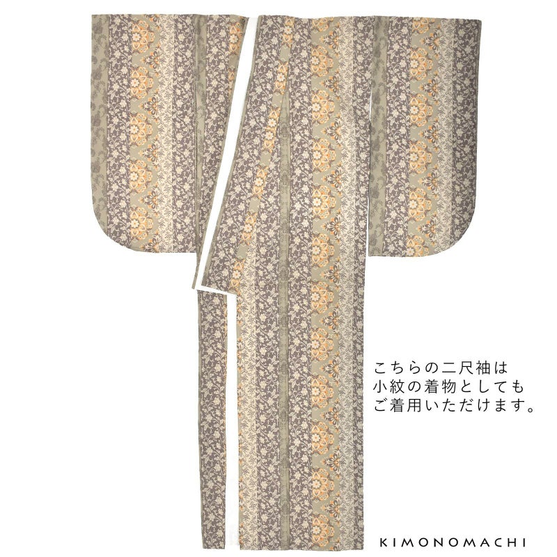 二尺袖着物 単品 「縞更紗 利休」 KIMONOMACHIオリジナル お仕立て上がり レディース 洗える着物 二尺袖 着物 袴に合わせて 卒業式 謝恩会に 通常丈 長着 カジュアル着物 【メール便不可】