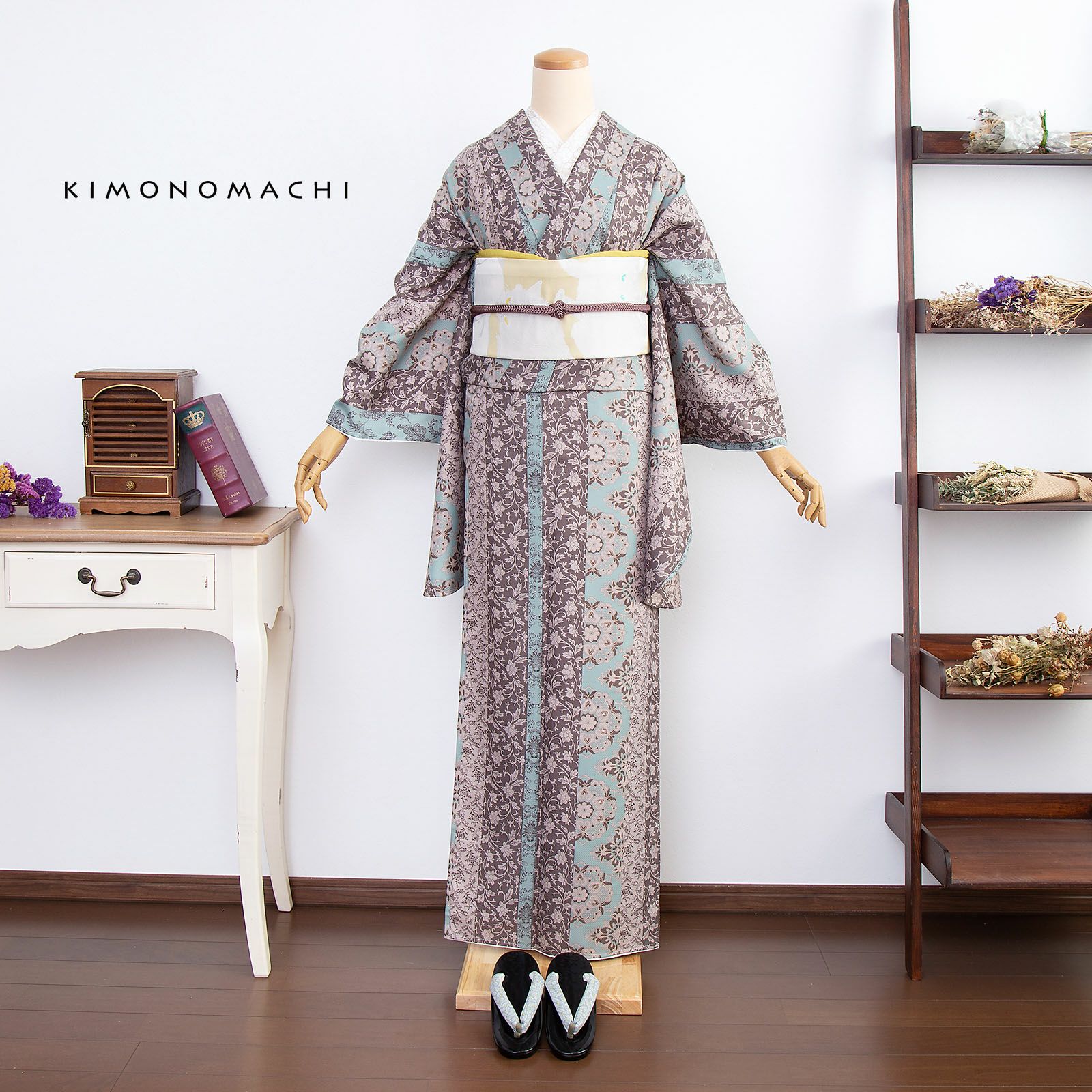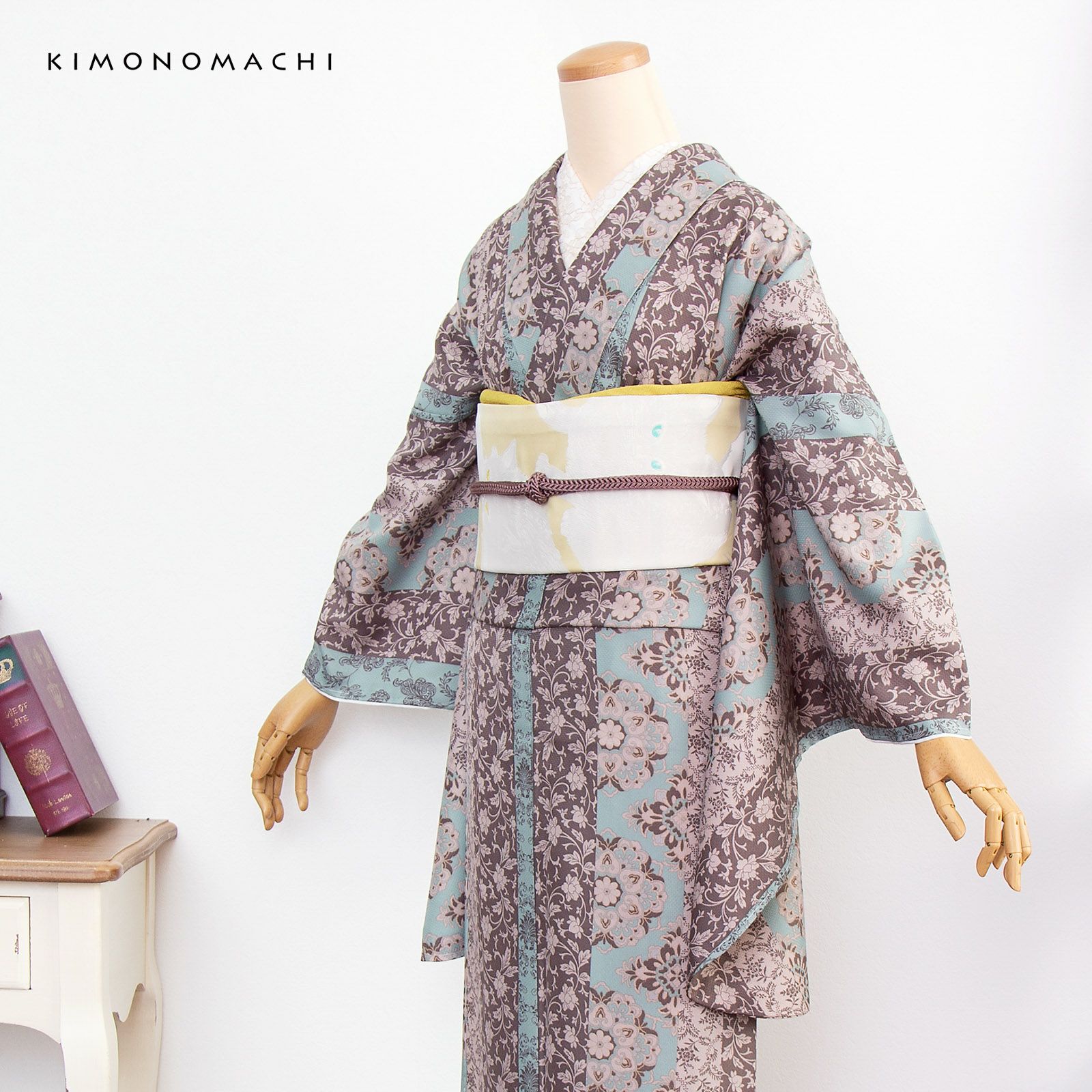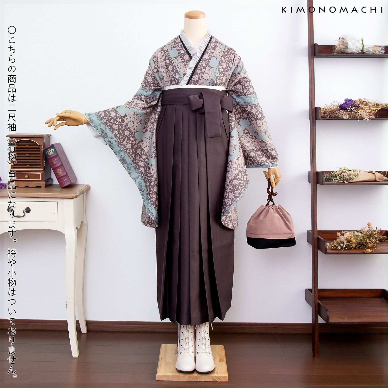 京都きもの町オリジナルブランド「KIMONOMACHI」の二尺袖着物単品です。袴と合わせて卒業式などの袴スタイルに。また身丈が通常の着物と同様の長さがございますので、袴無しで、袖が長めなアンティーク風着物としてもお召しいただけます。