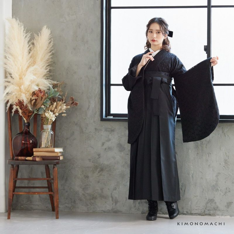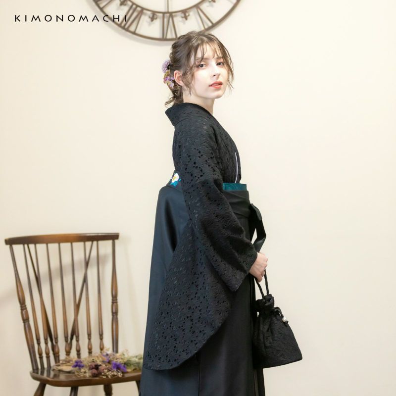 KIMONOMACHIオリジナルのレース二尺袖きもの単品 (成人式卒業式最大70%1/8迄)レース 二尺袖着物 単品 「ブラック×ブラック」 お仕立て上がり KIMONOMACHI オリジナル レディース レース二尺着物 二尺袖 袴に合わせて 卒業式 謝恩会に ショート丈 京都きもの町オリジナル 【メール便不可】ss2506kck20
