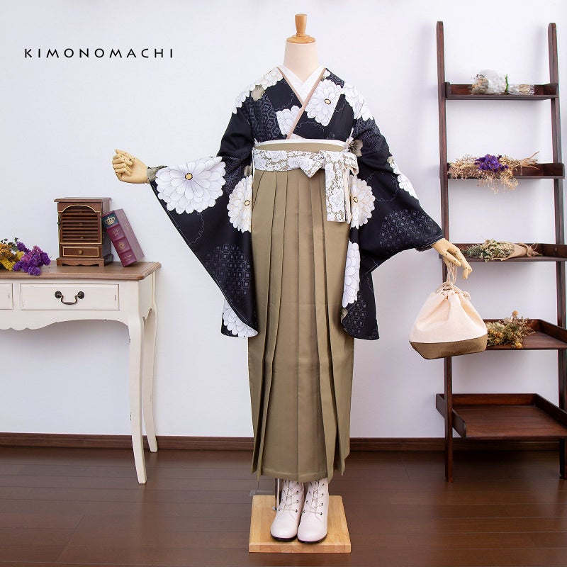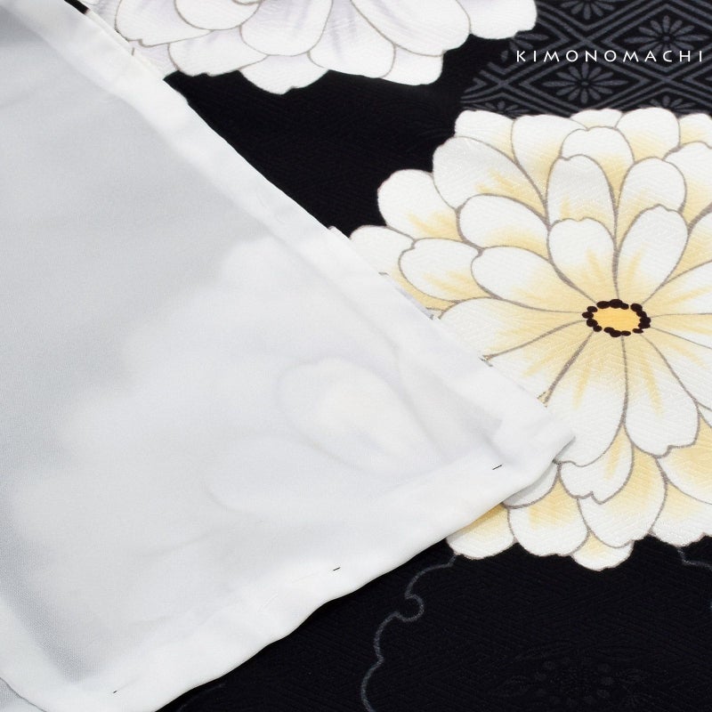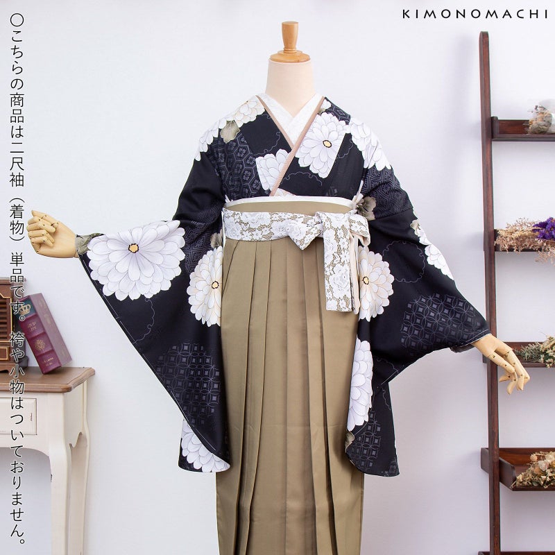 (卒業式応援75%SALE 2/19迄)二尺袖着物 単品 「黒 雪輪取りに八重菊」 お仕立て上がり レディース 洗える着物 二尺袖 着物 袴に合わせて 卒業式 謝恩会に 【メール便不可】<H>