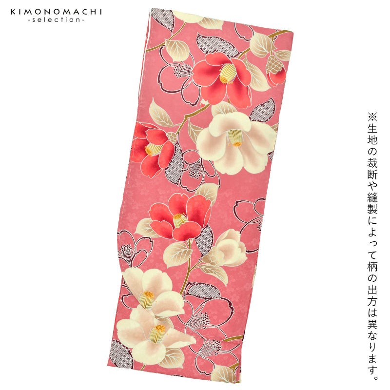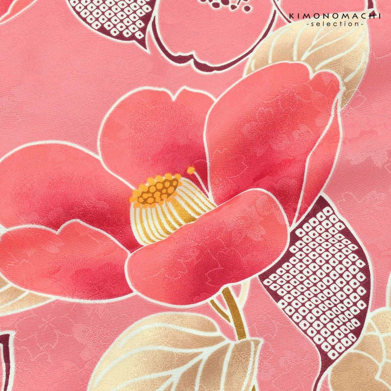 二尺袖着物 単品 「ピンク地 椿」 お仕立て上がり レディース 洗える着物 二尺袖 着物 袴に合わせて 卒業式 謝恩会に 通常丈 長着 カジュアル着物 【メール便不可】