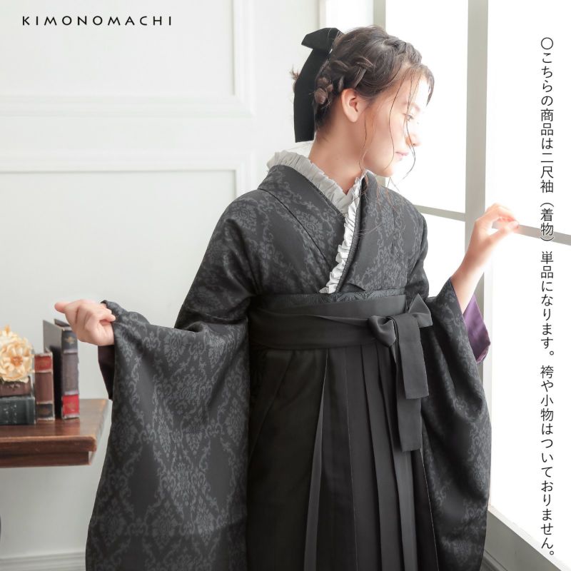 二尺袖着物 単品「アラベスクブラック」KIMONOMACHIオリジナル お仕立て上がり レディース 洗える着物 二尺袖 着物 袴に合わせて 卒業式 謝恩会に 通常丈 長着 カジュアル着物