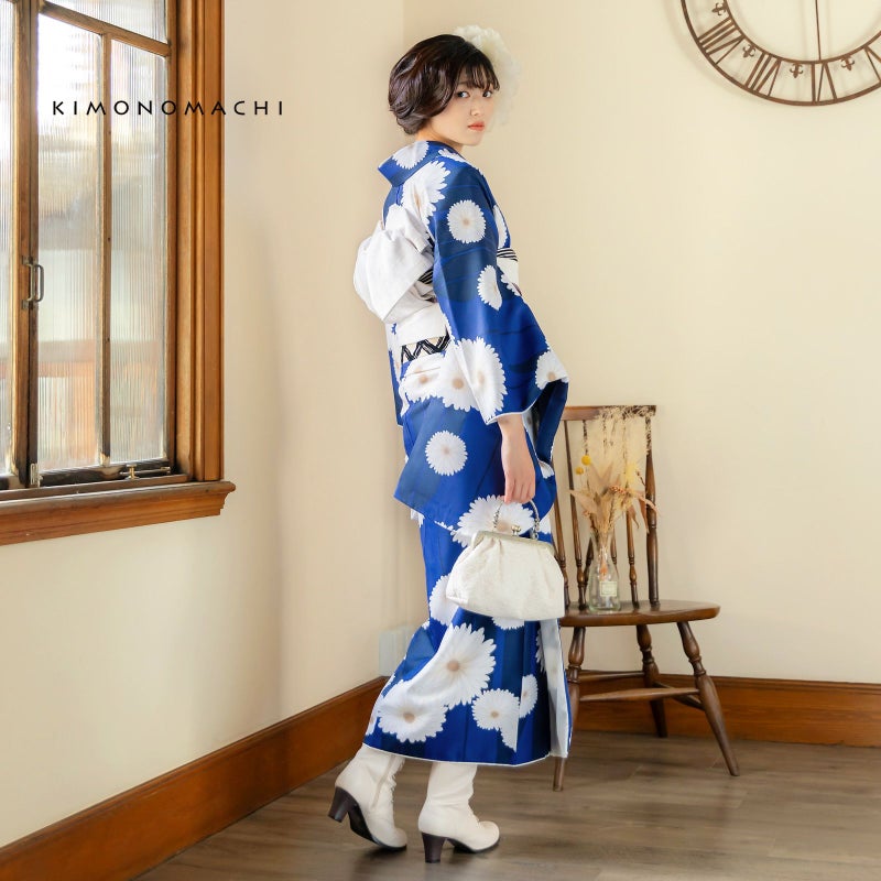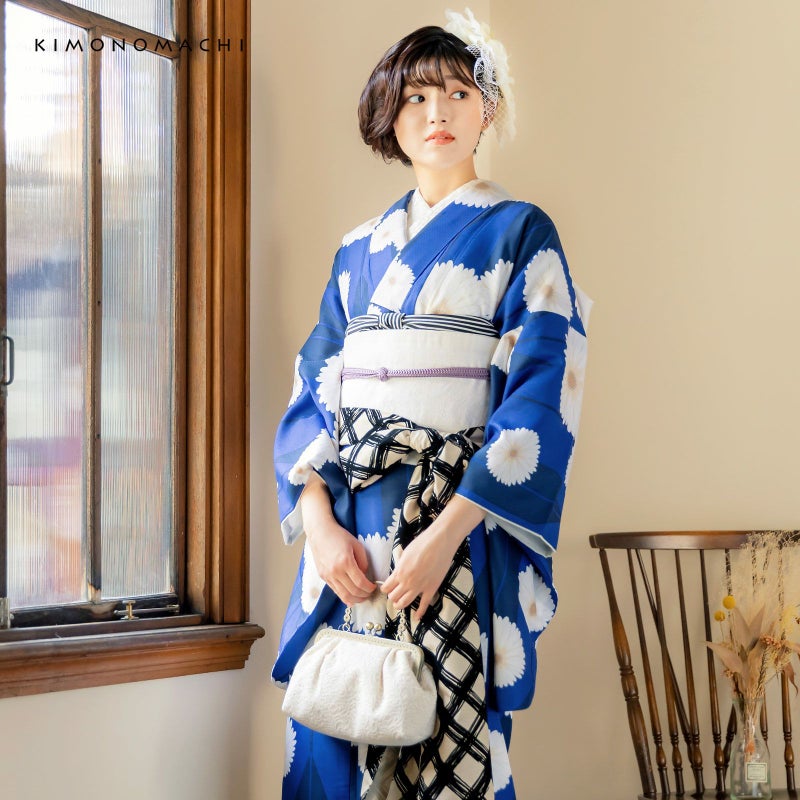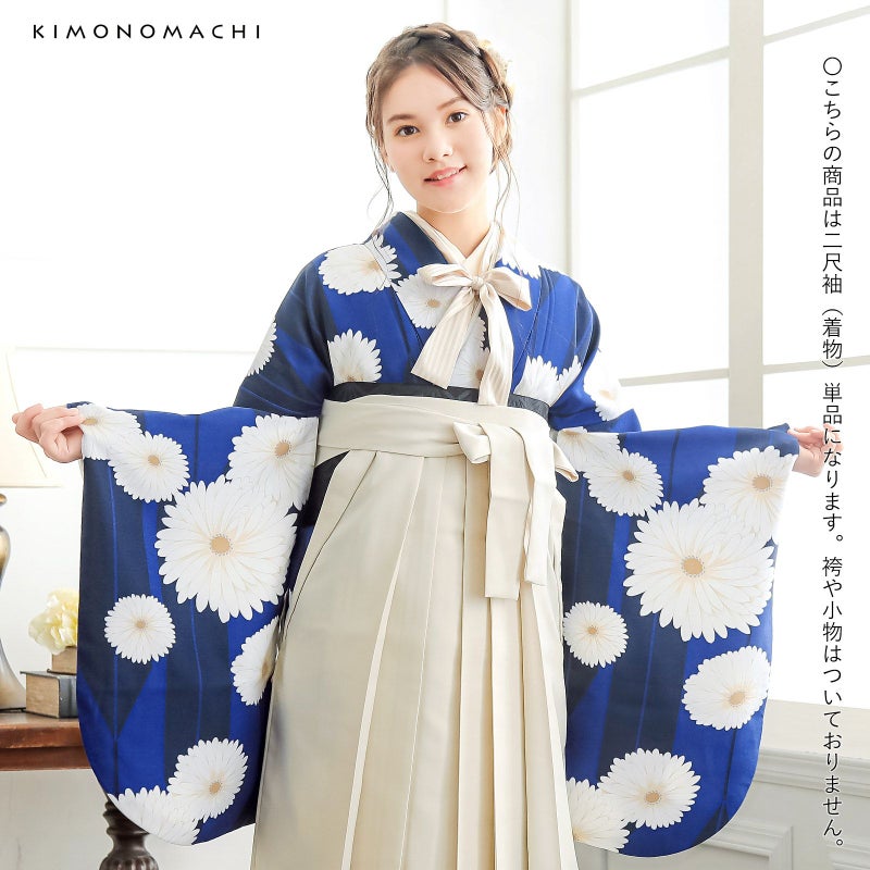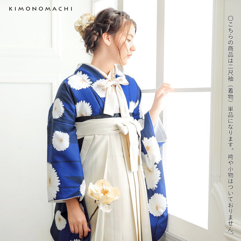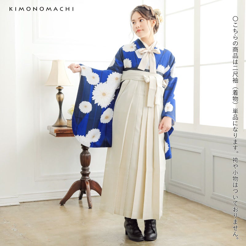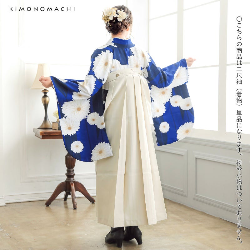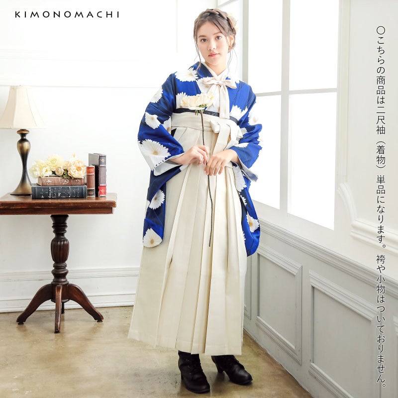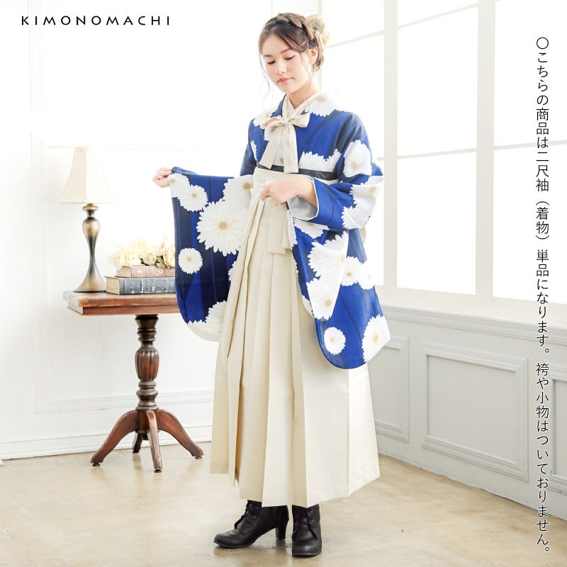 京都きもの町オリジナルブランド「KIMONOMACHI」の二尺袖着物単品です。袴と合わせて卒業式などの袴スタイルに。また身丈が通常の着物と同様の長さがございますので、袴無しで、袖が長めなアンティーク風着物としてもお召しいただけます。