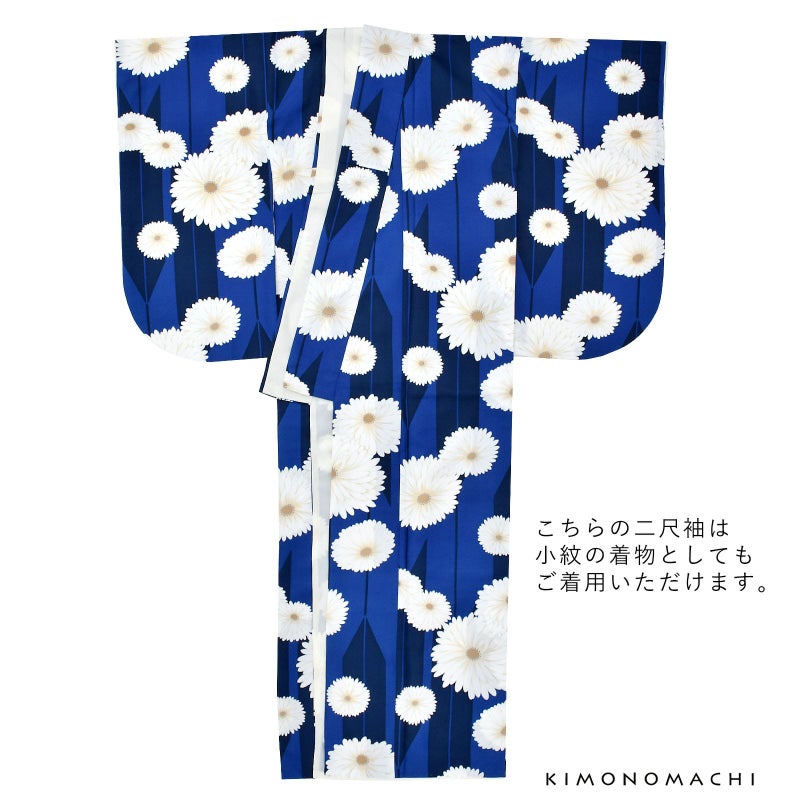 二尺袖着物 単品「矢羽根に菊瑠璃色」KIMONOMACHIオリジナル お仕立て上がり レディース 洗える着物 二尺袖 着物 袴に合わせて 卒業式 謝恩会に 通常丈 長着 カジュアル着物