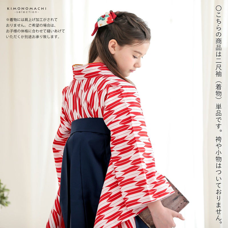 (卒業式応援75%SALE 3/5迄)ジュニア 二尺袖着物 単品 小学生 女の子「矢羽 赤×白」お仕立て上がり ショート丈 短丈 二尺袖 子ども 子供 キッズ ジュニア 女の子 卒業式 小学校 小学生 中学校 中学生 ジュニア着物 袴に合わせて【メール便不可】