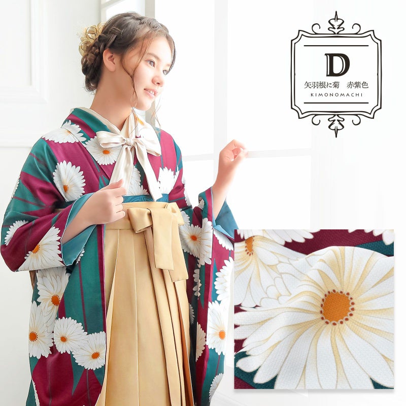 5. (卒業式応援75%SALE 2/19迄)二尺袖着物 単品「アラベスク・ばら・ストライプブーケ・矢羽根に菊」KIMONOMACHIオリジナル お仕立て上がり レディース 洗える着物 二尺袖 着物 袴に合わせて 卒業式 謝恩会に 通常丈 長着 カジュアル着物【メール便不可】