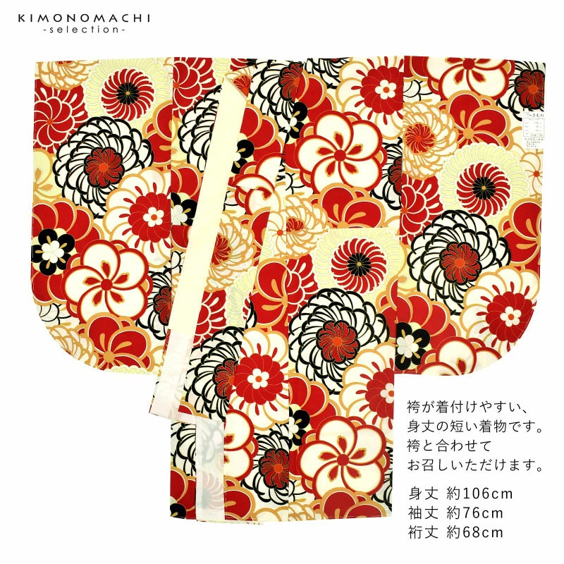 卒業式、謝恩会に 袴に合わせて華やかに 二尺袖着物 二尺袖着物 単品 百華小紋「ねじ花 レッド」日本製 お仕立て上がり レディース 洗える着物 二尺袖 着物 袴に合わせて 卒業式 謝恩会に 取り寄せ品<U>【メール便不可】