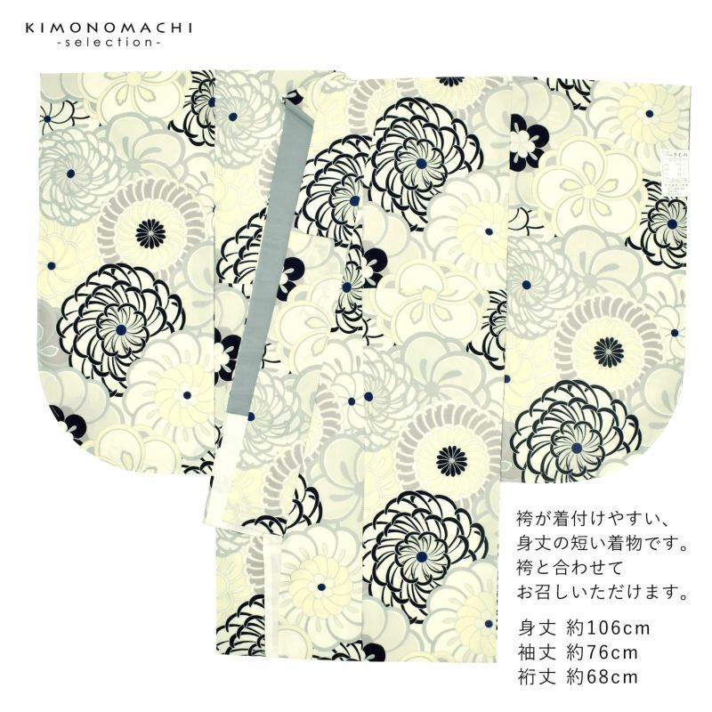 卒業式、謝恩会に 袴に合わせて華やかに 二尺袖着物 (卒業式応援Point10倍 2/19迄)二尺袖着物 単品 百華小紋「ねじ花 オフホワイト」日本製 お仕立て上がり レディース 洗える着物 二尺袖 着物 袴に合わせて 卒業式 謝恩会に 取り寄せ品<U>【メール便不可】
