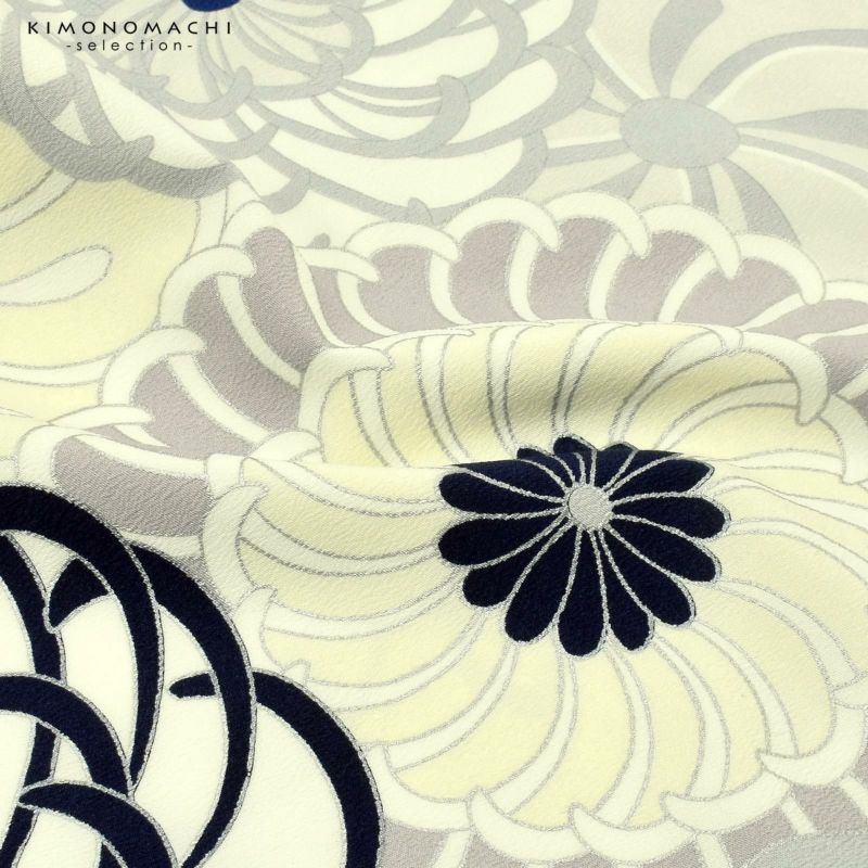 オフホワイト、アイボリー、グレイッシュなベージュに紺やグレーがポイントとして入ったねじ梅や菊などねじりの花紋。