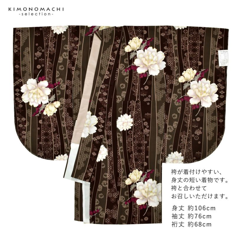 3. 二尺袖着物 単品 百華小紋「立湧に芍薬 ブラウン」日本製 お仕立て上がり レディース 洗える着物 二尺袖 着物 袴に合わせて 卒業式 謝恩会に 取り寄せ品<U>【メール便不可】