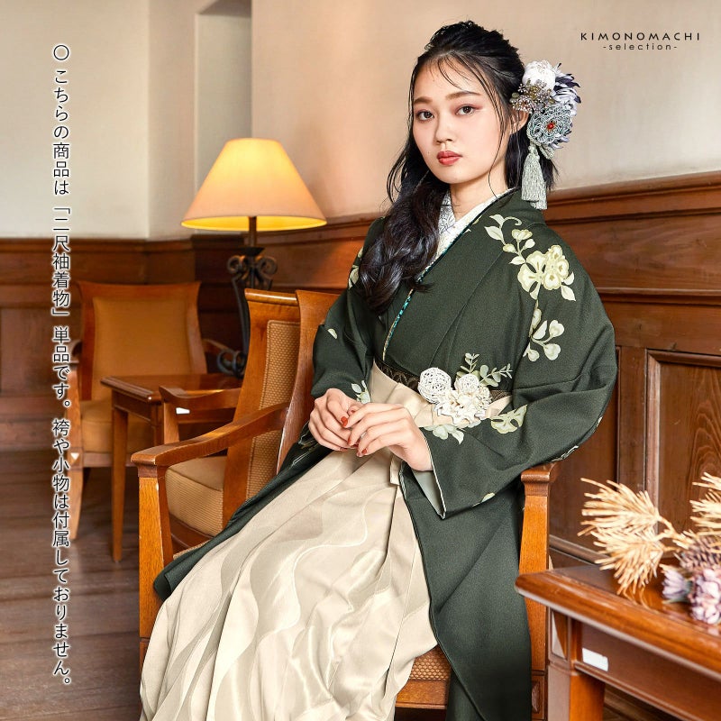 3. 二尺袖着物 単品 絵羽「唐花 モスグレー」日本製 お仕立て上がり レディース 洗える着物 二尺袖 着物 袴に合わせて 卒業式 謝恩会に 取り寄せ品<U>【メール便不可】