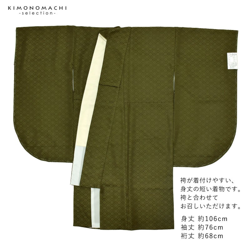 二尺袖着物 単品 紋意匠 無地「オリーブグリーン」日本製 お仕立て上がり レディース 洗える着物 二尺袖 着物 袴に合わせて 卒業式 謝恩会に<U>【メール便不可】