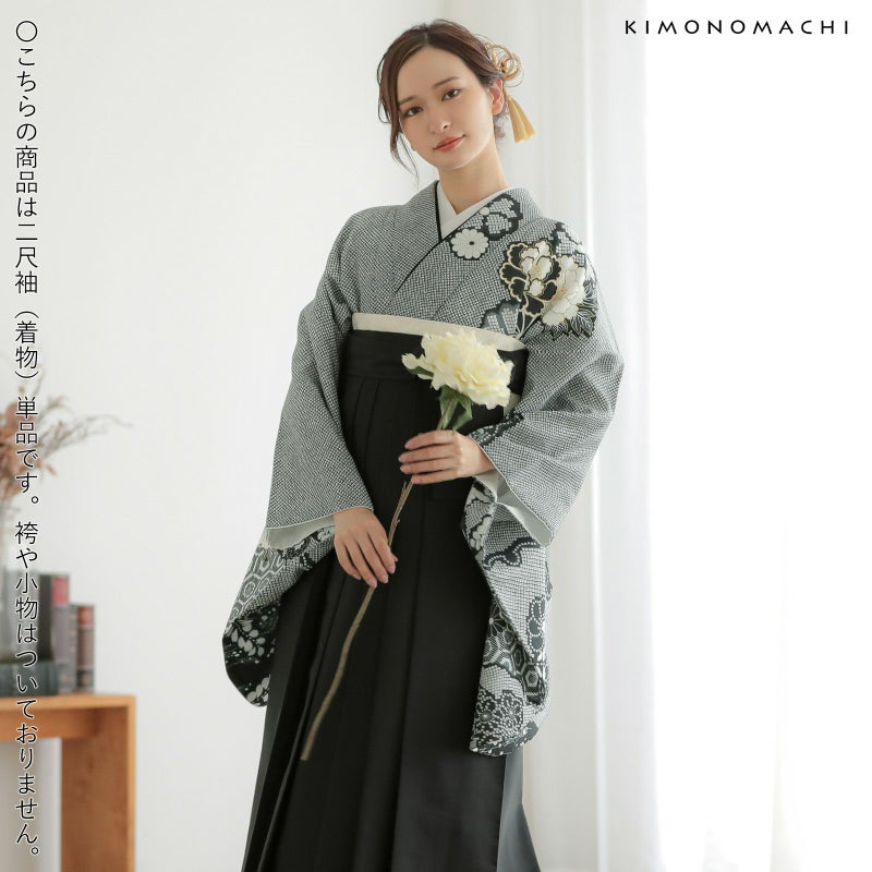 (卒業式応援75%SALE 3/5迄)二尺袖着物 単品「黒緑 菊牡丹に疋田」お仕立て上がり レディース 洗える着物 二尺袖 着物 袴に合わせて 卒業式 謝恩会に【メール便不可】ss2412kmn10