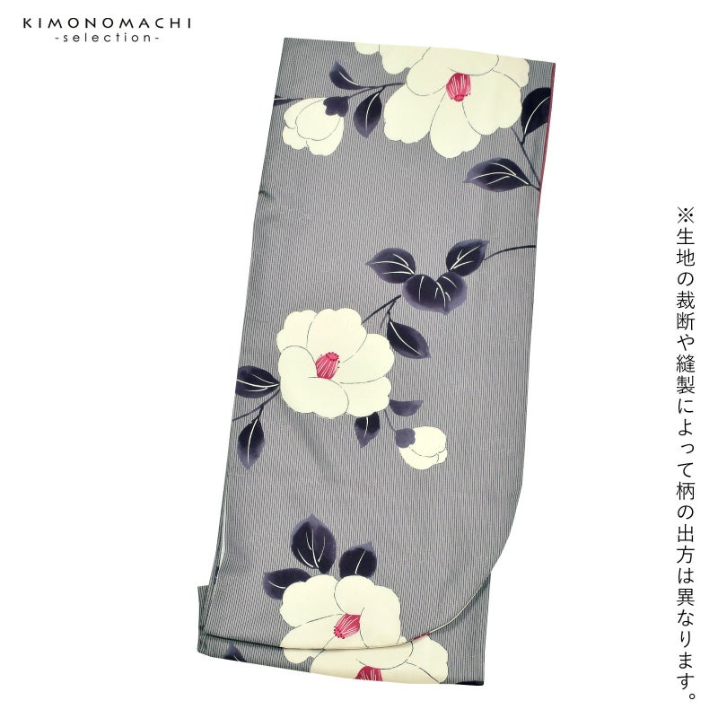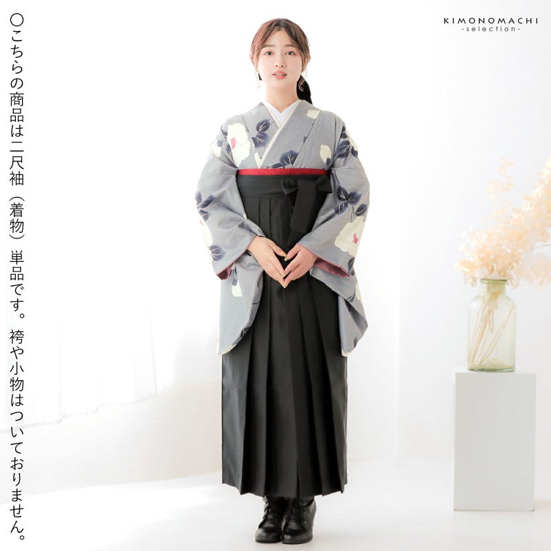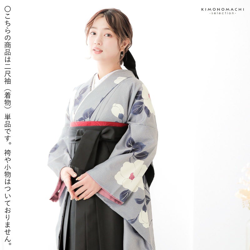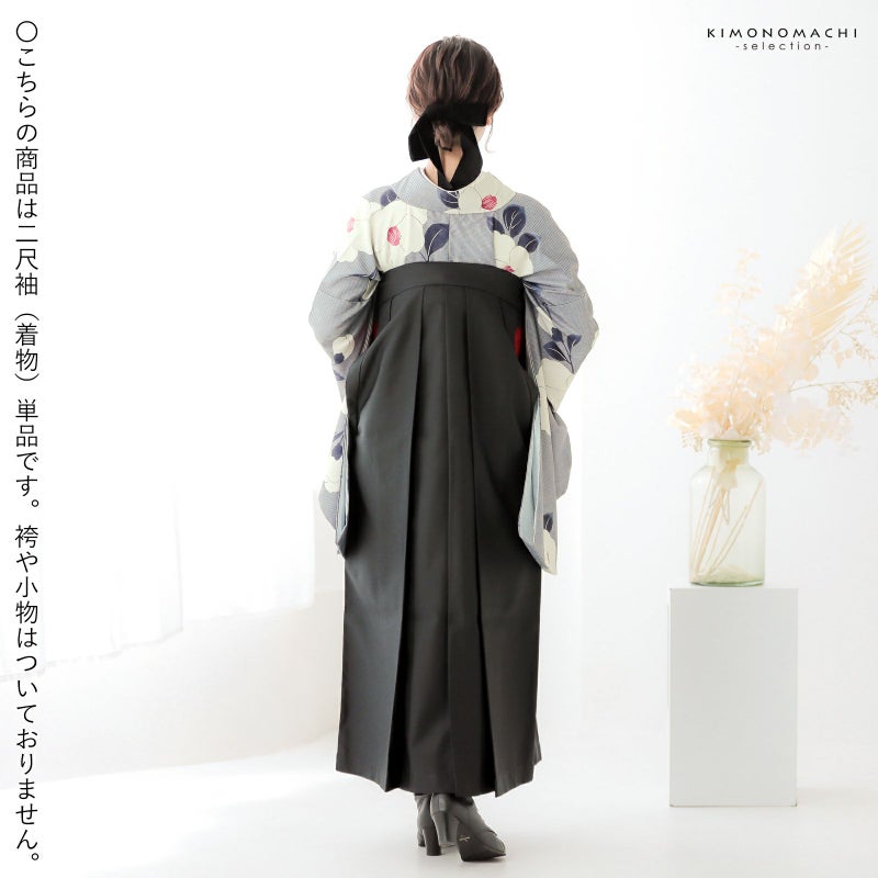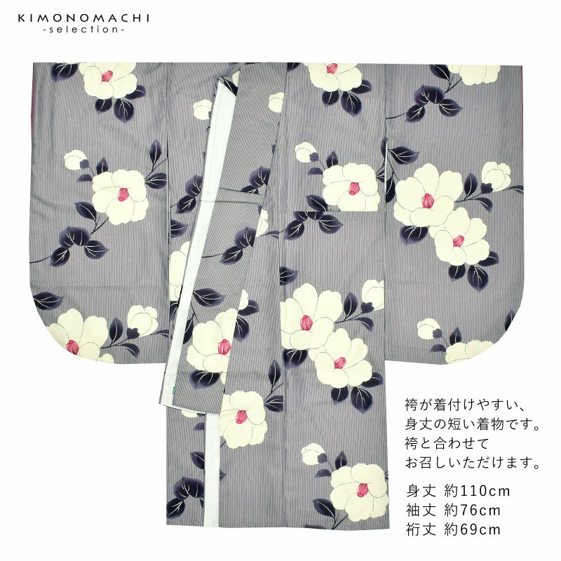 二尺袖着物 単品「縞に椿 グレー」お仕立て上がり レディース 洗える着物 二尺袖 着物 袴に合わせて 卒業式 謝恩会に