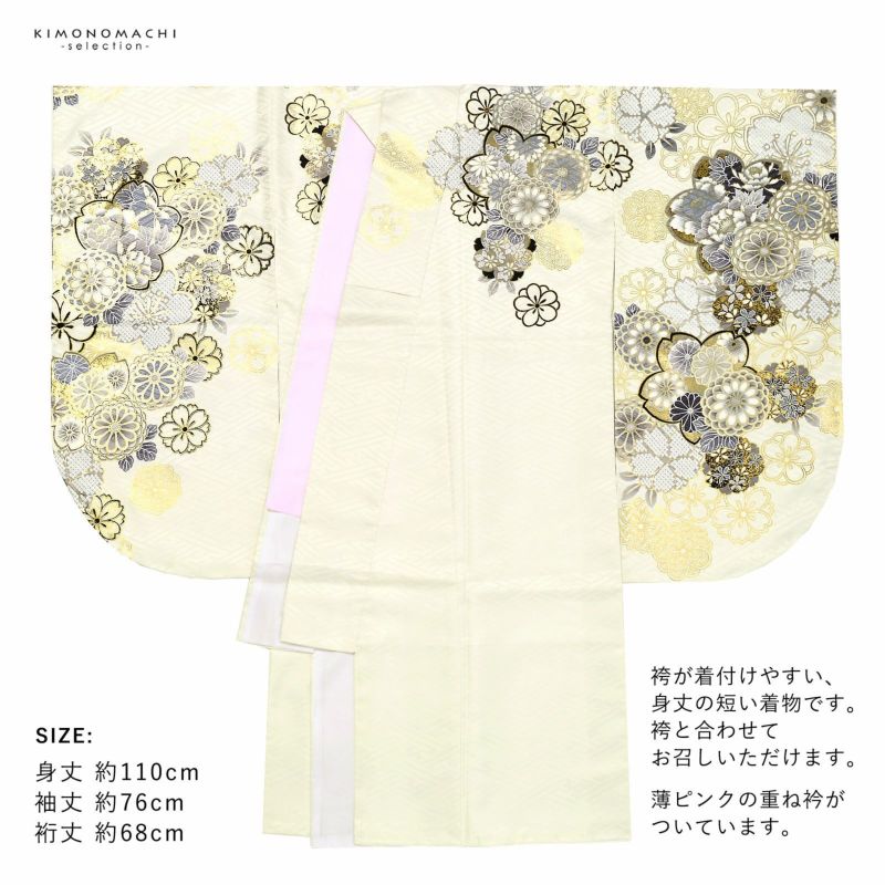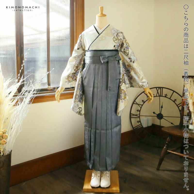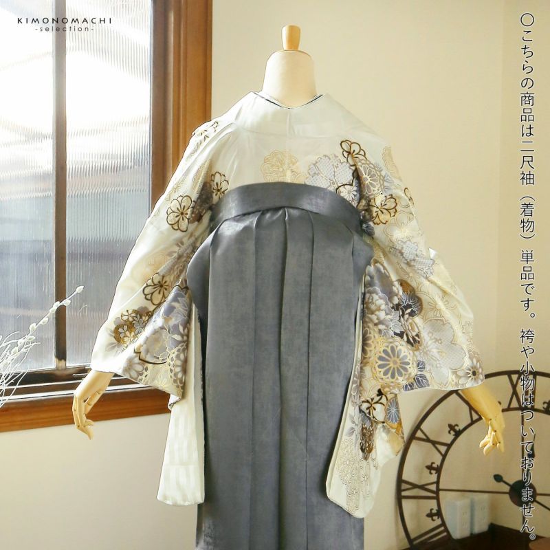 卒業式、謝恩会に 袴に合わせて華やかに 二尺袖着物 二尺袖着物 単品 絵羽「アイボリー地 銀鼠色、花紋」Fサイズ お仕立て上がり 短丈 ショート丈 レディース 洗える着物 二尺袖 着物 袴に合わせて 卒業式 謝恩会【メール便不可】