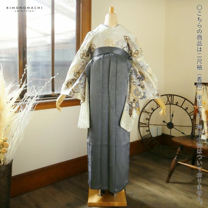 二尺袖着物 単品 絵羽「アイボリー地 銀鼠色、花紋」Fサイズ お仕立て上がり 短丈 ショート丈 レディース 洗える着物 二尺袖 着物 袴に合わせて 卒業式 謝恩会